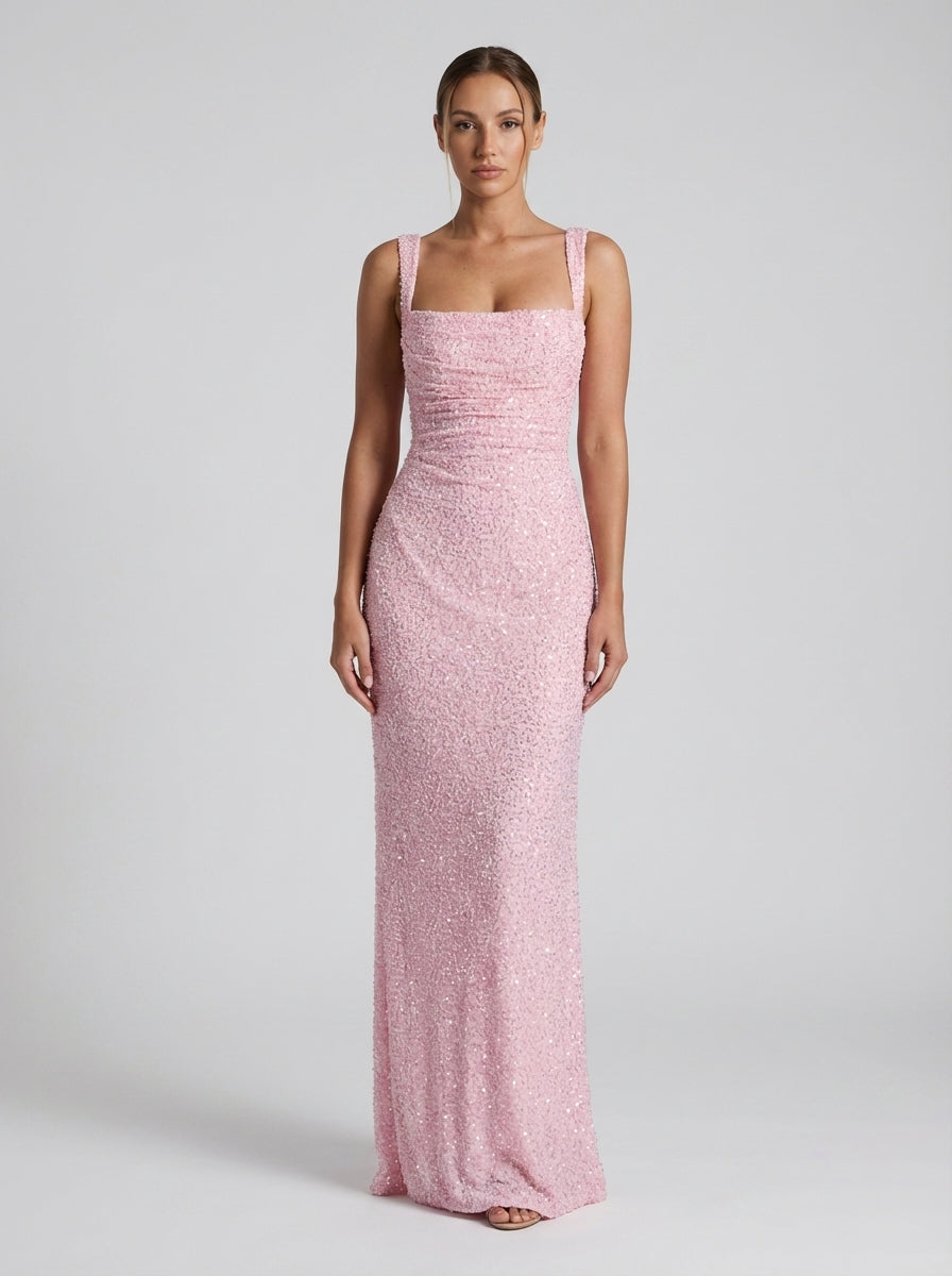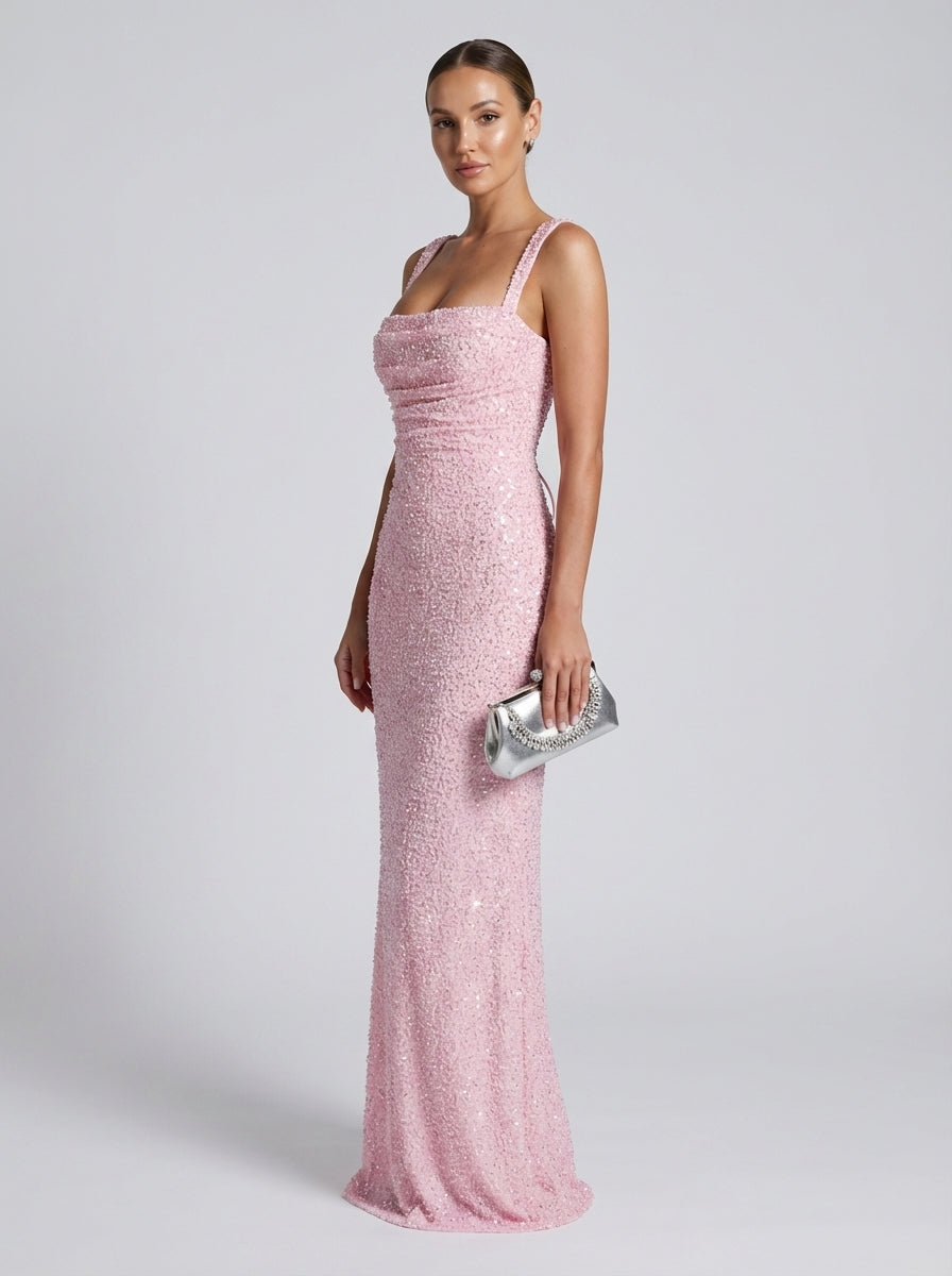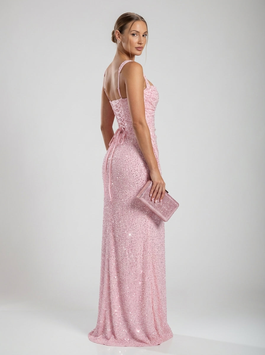REGALIA Rhinestone Corset Gown - Plush Pink
