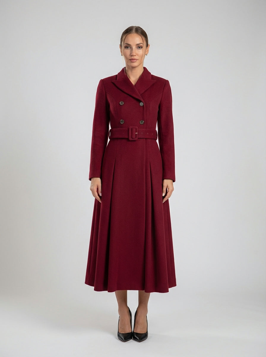Ideal for formal daytime occasions, elevated workwear, or refined evening events, the Isolde Double-Breasted Coat Dress is perfect for women seeking a burgundy coat dress, tailored midi silhouette, or a polished statement piece that blends strength with sophistication.