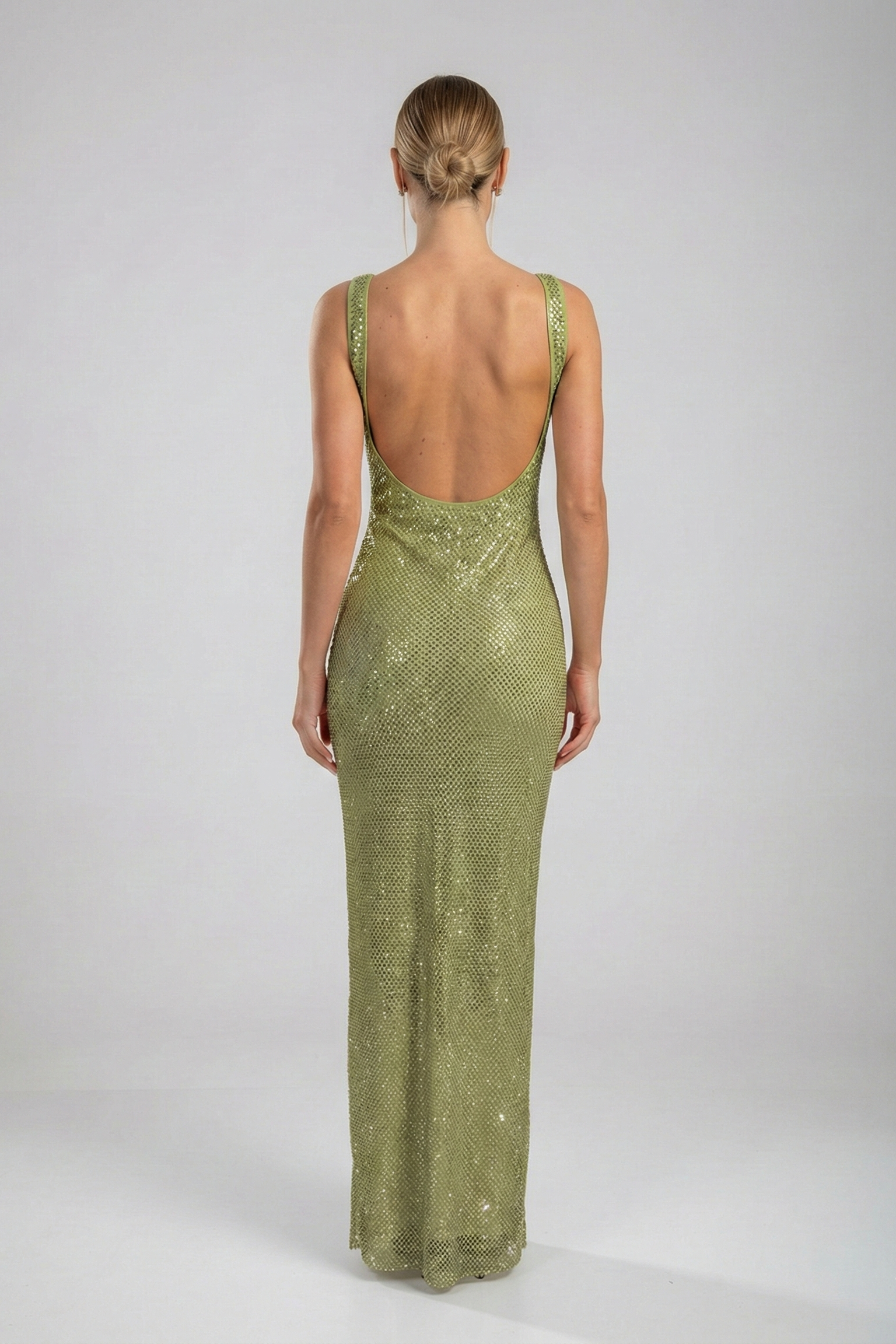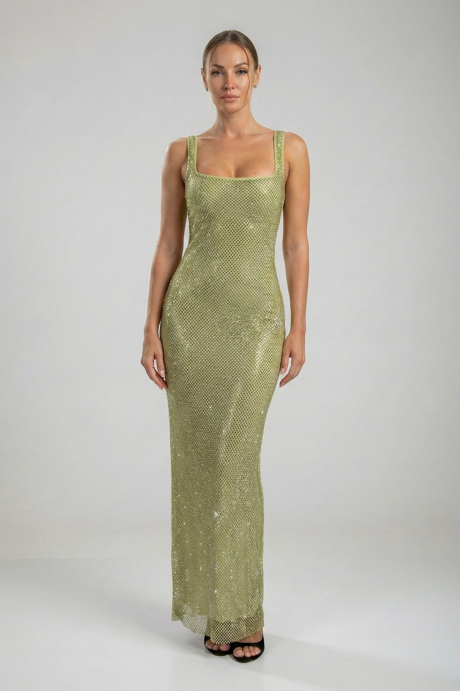 שמלת רשת קריסטל נוקטורן - ירוקה