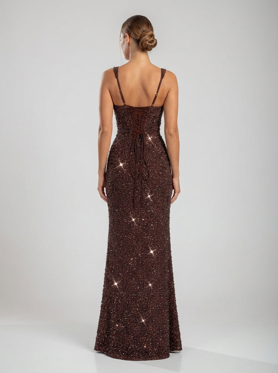 Our gowns are crafted from structured, fully lined premium fabric — never thin, never transparent. The fabric holds its shape beautifully while remaining comfortable all night.