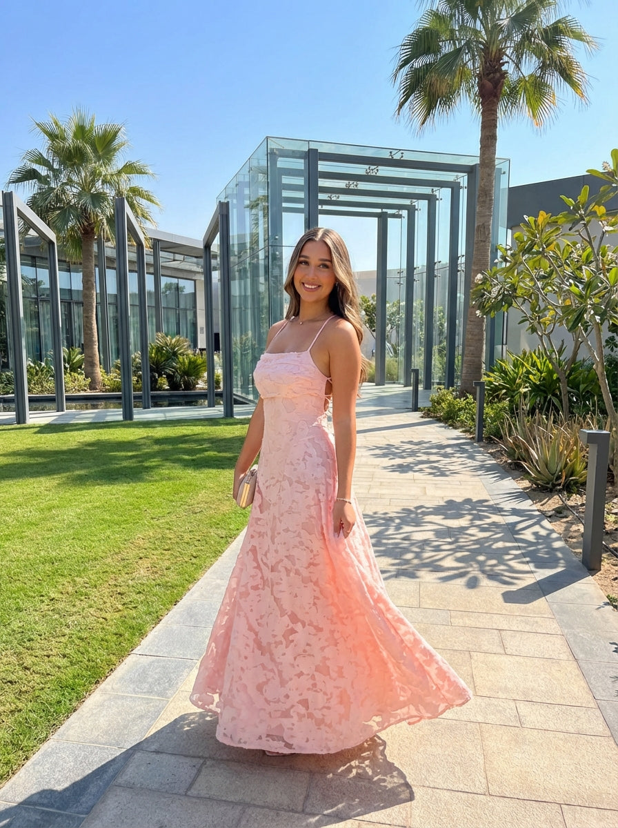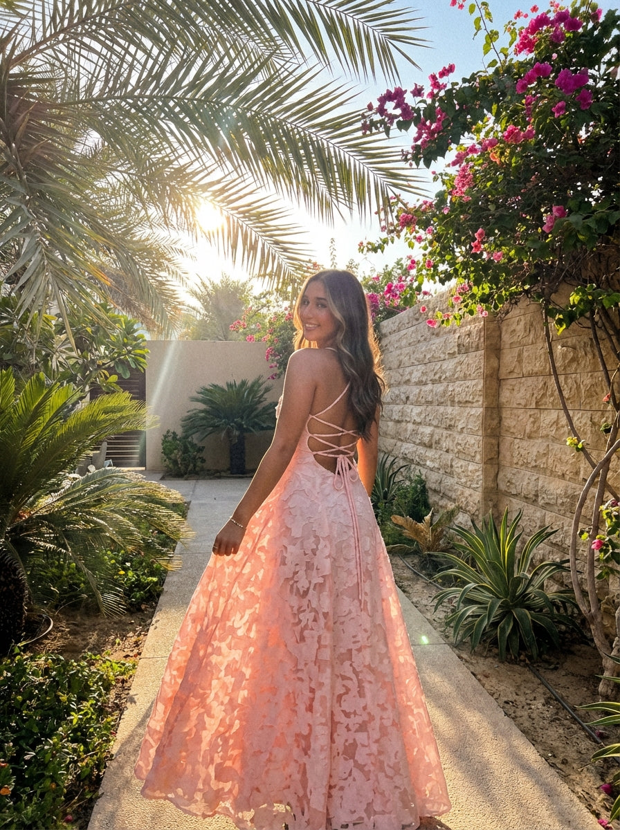שמלת רוזלה בצבע ורוד עדין היא חגיגה של רומנטיקה ואלגנטיות. עשויה מ lace פרחוני תלת-ממדי, החלק העליון הצמוד של השמלה וחצאית A-line זורמת יוצרים סילואט מחמיא עם תנועה קלילה. הגוונים הפיצ'יים של הוורוד העדין מחזקים את הרכות שלה, בעוד שהמרקם העדין של ה-lace מוסיף עומק ועידון.